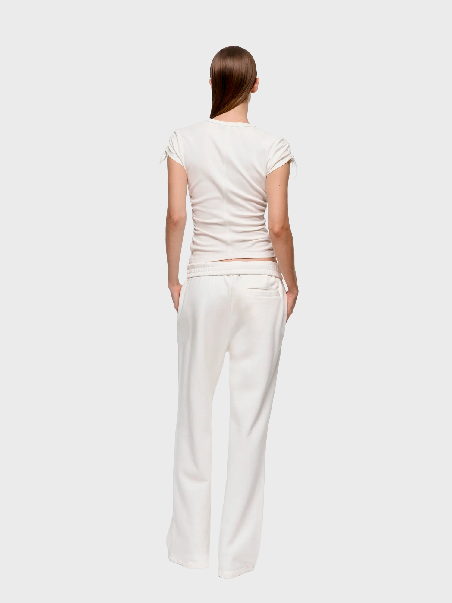 Приталенная футболка из органического хлопка с эластаном и принтом спереди. Модель с завязками на рукавах.