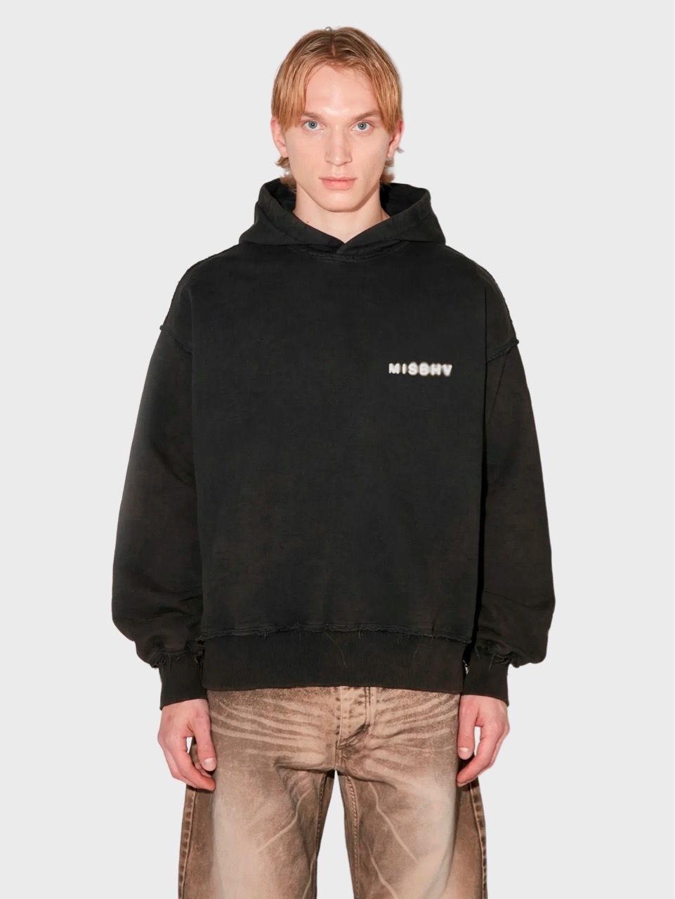 Описание: Худи из плотного french terry с эффектом выцветания и принтами спереди и сзади. Свободная посадка со спущенной линией плеч.