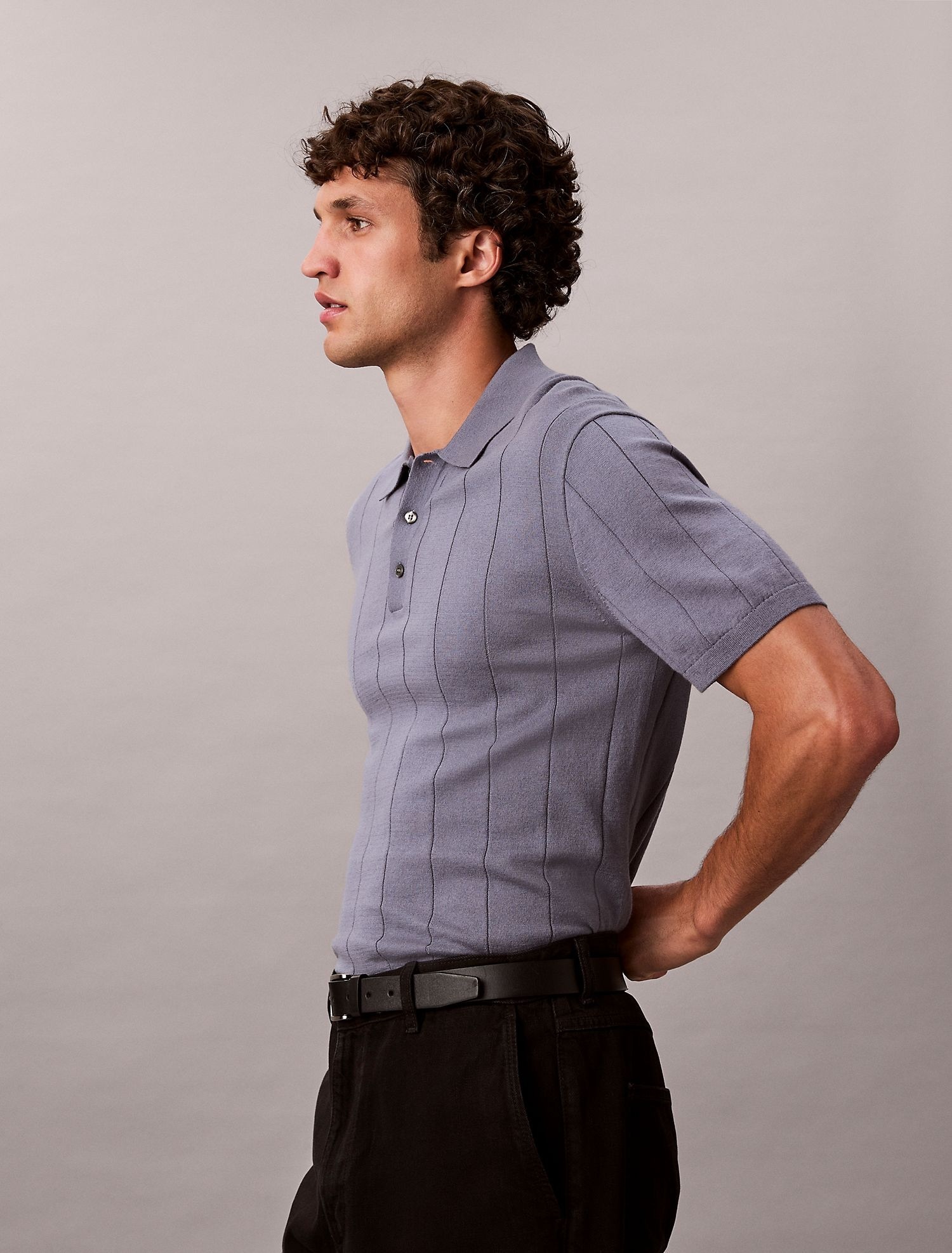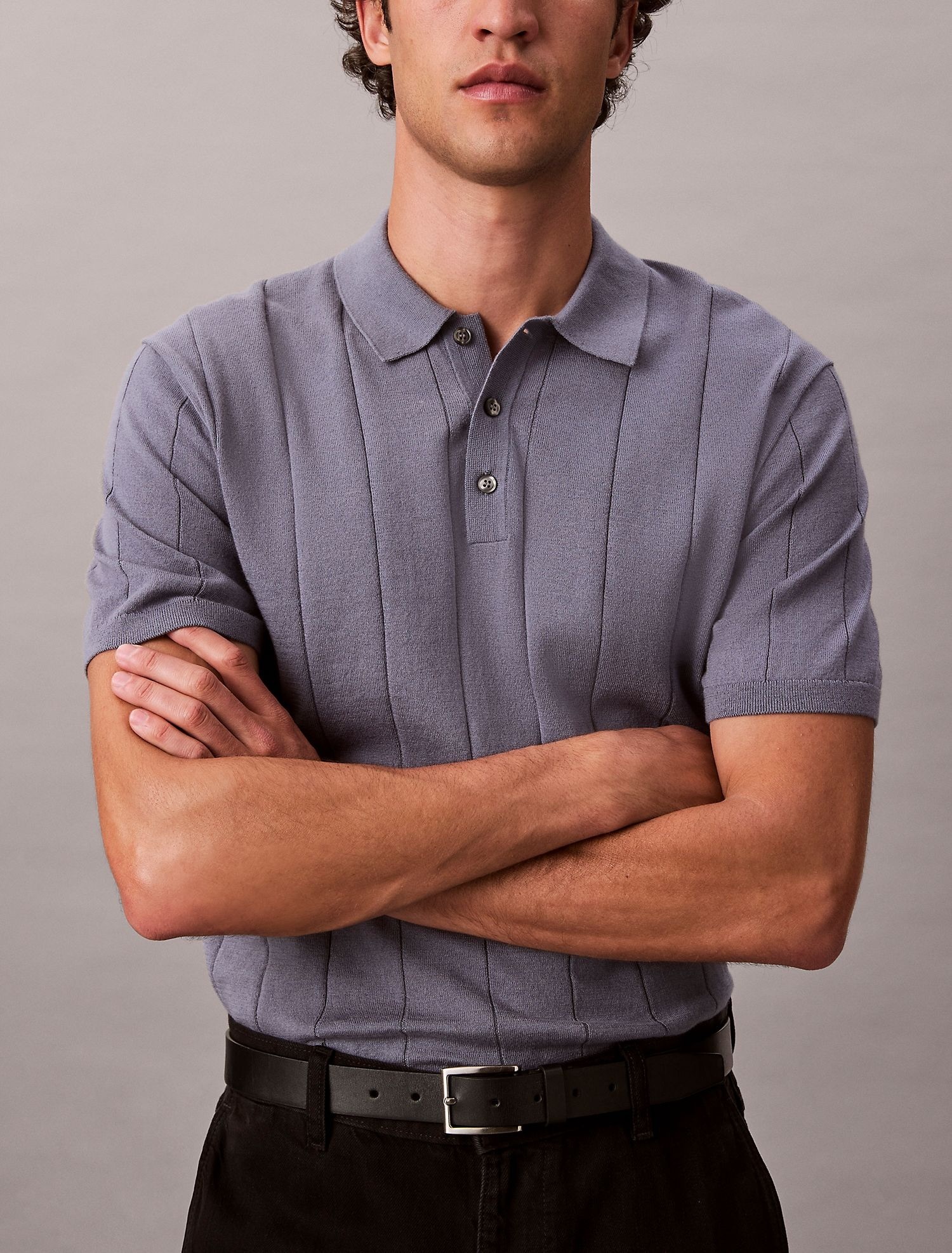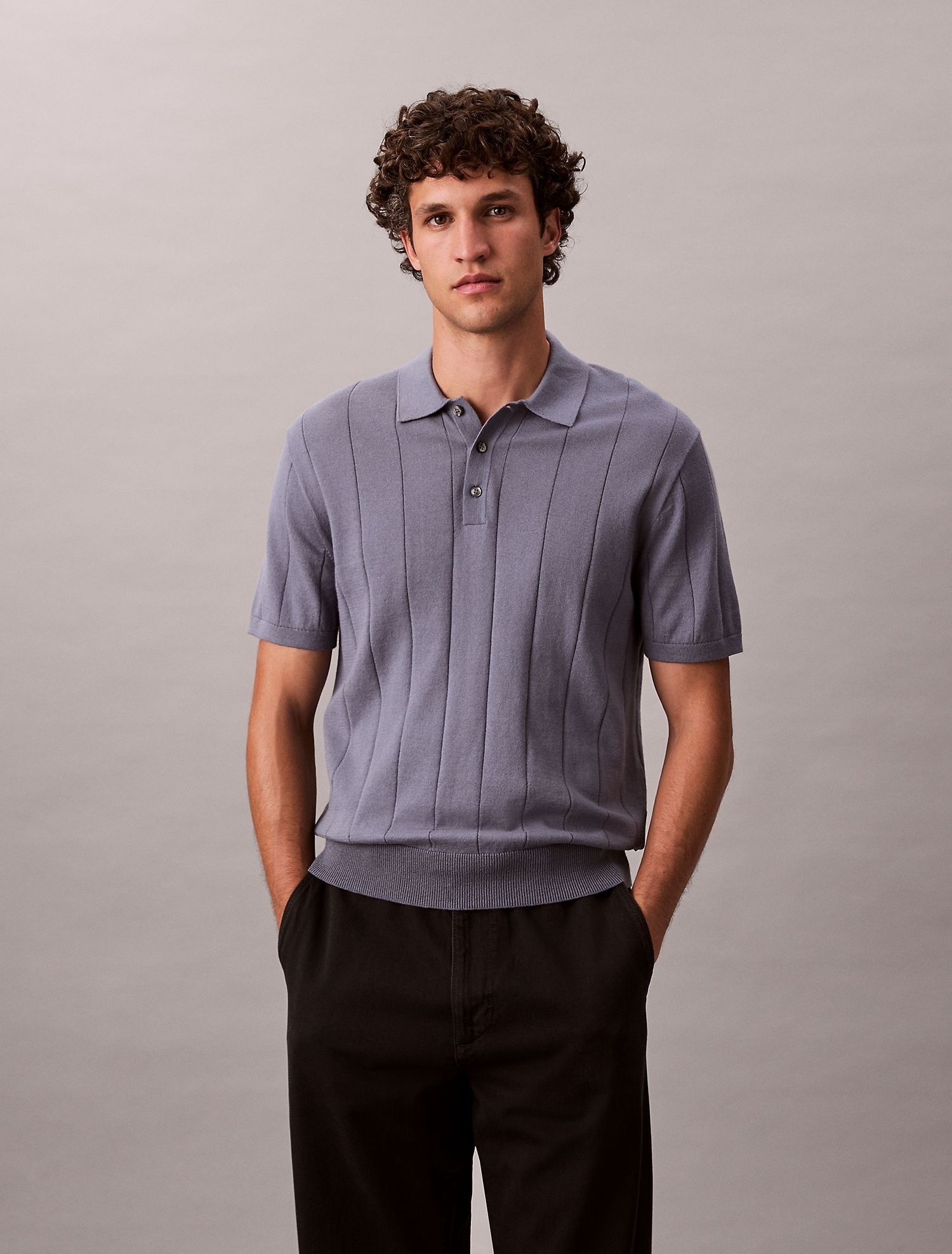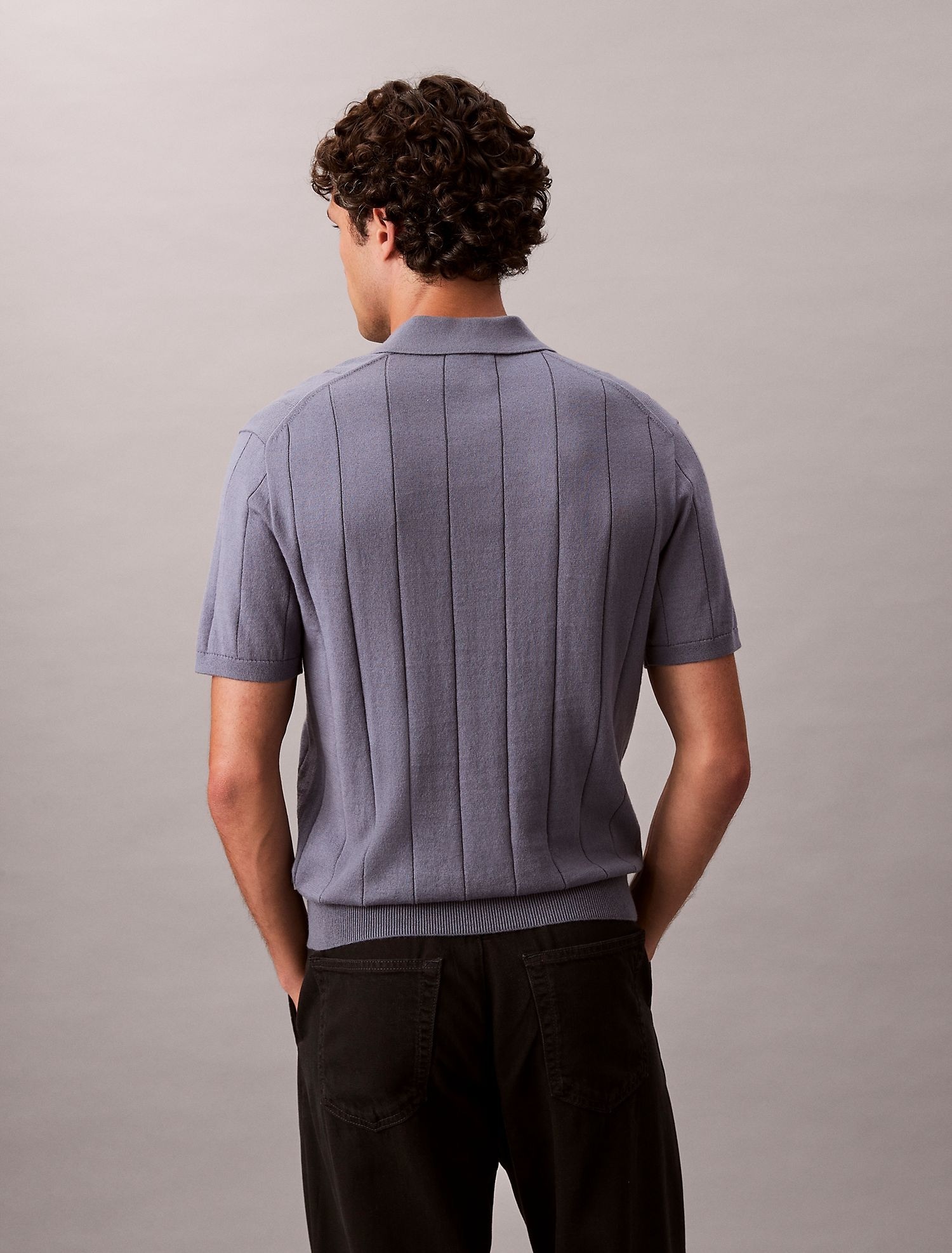 Детали: широкий рубчик; воротник поло; короткие рукава