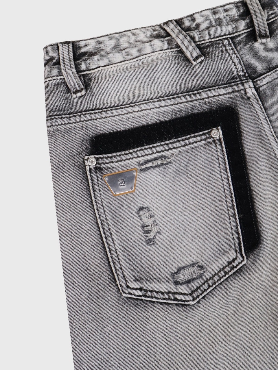Детали: застежка на пуговице, 5 карманов, покрытие черного цвета на манжетах и заднем кармане, эффект вымывания