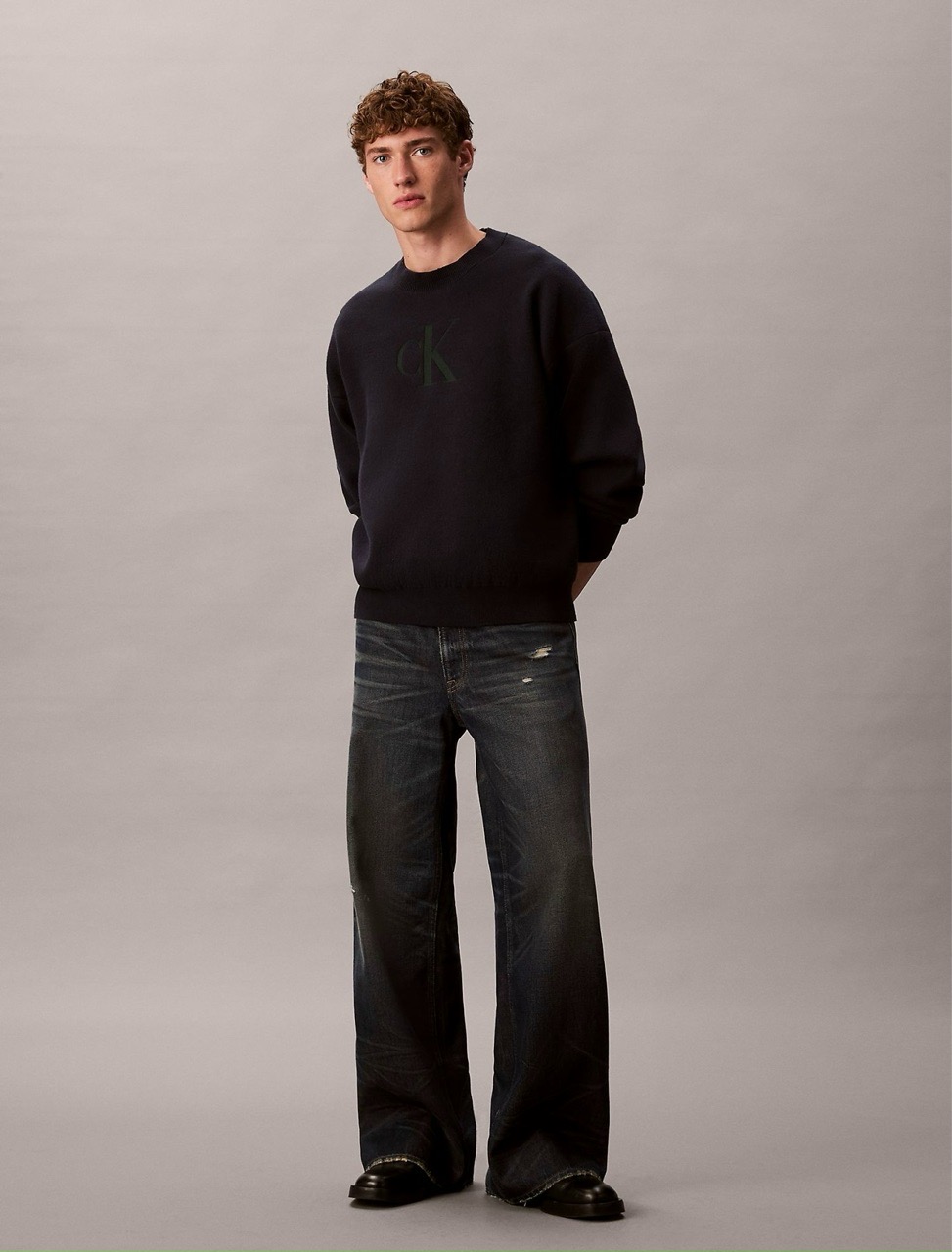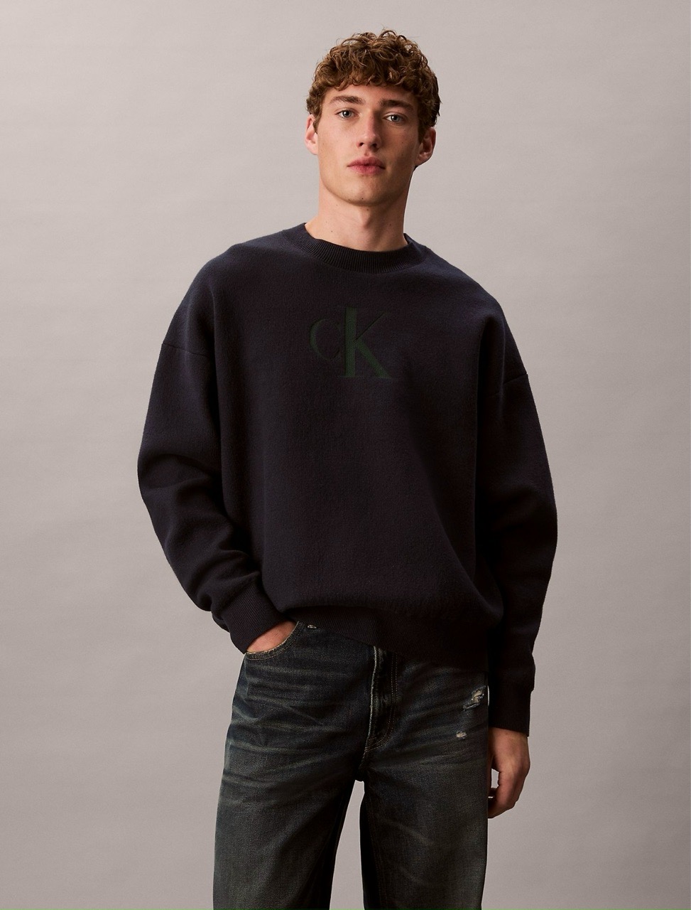 Свитер Calvin Klein Cotton Blend Monogram Relaxed Sweater Blue